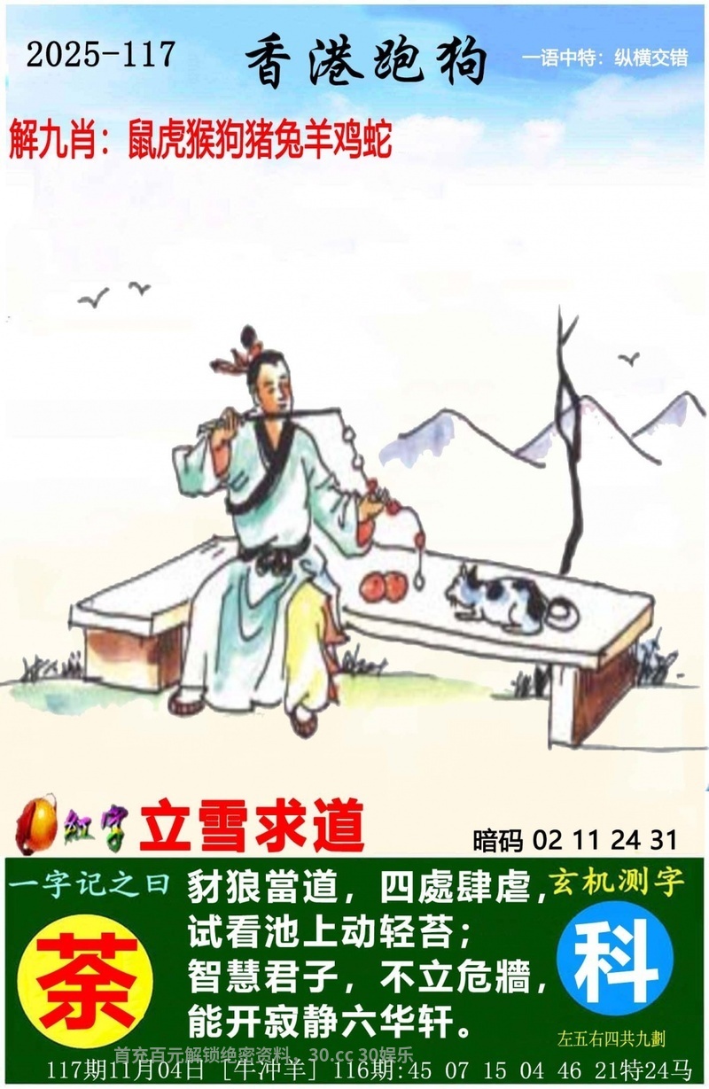 | 117期:七肖中特[狗兔鸡猴马虎鼠]开:虎04准 |