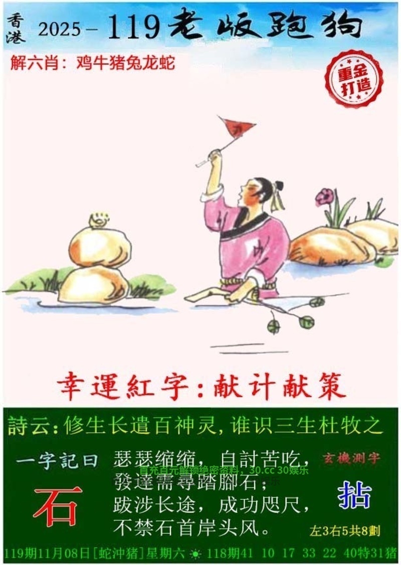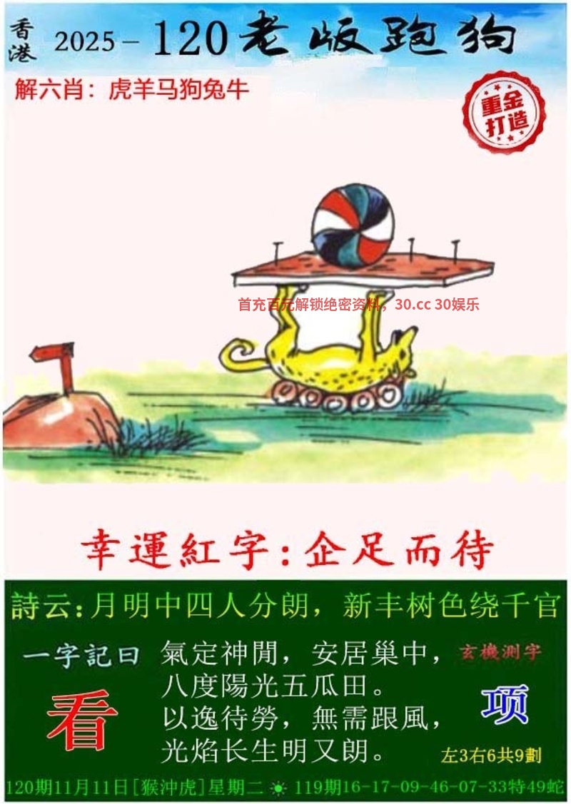 | 120期:七肖中特[马兔牛虎鼠猪鸡]开:牛41准 |